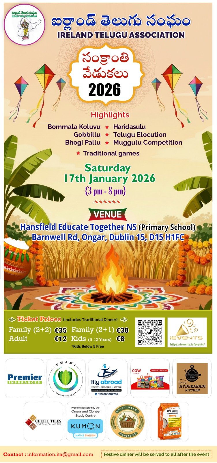 Ireland Telugu Association (ITA) has been organising Sankranti Vedukalu (Indian Harvest Festival) since 2008 in Ireland in the traditional approach. [...]