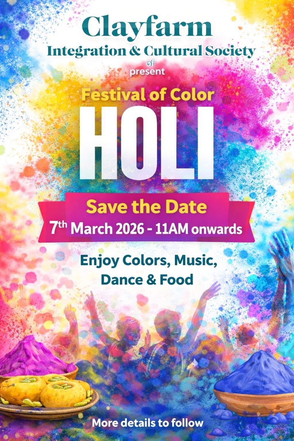 Clayfarm Integration & Cultural Society - CICS We are excited to celebrate Holi - The festival of Colours together on 7th March at Eco Park! [...]